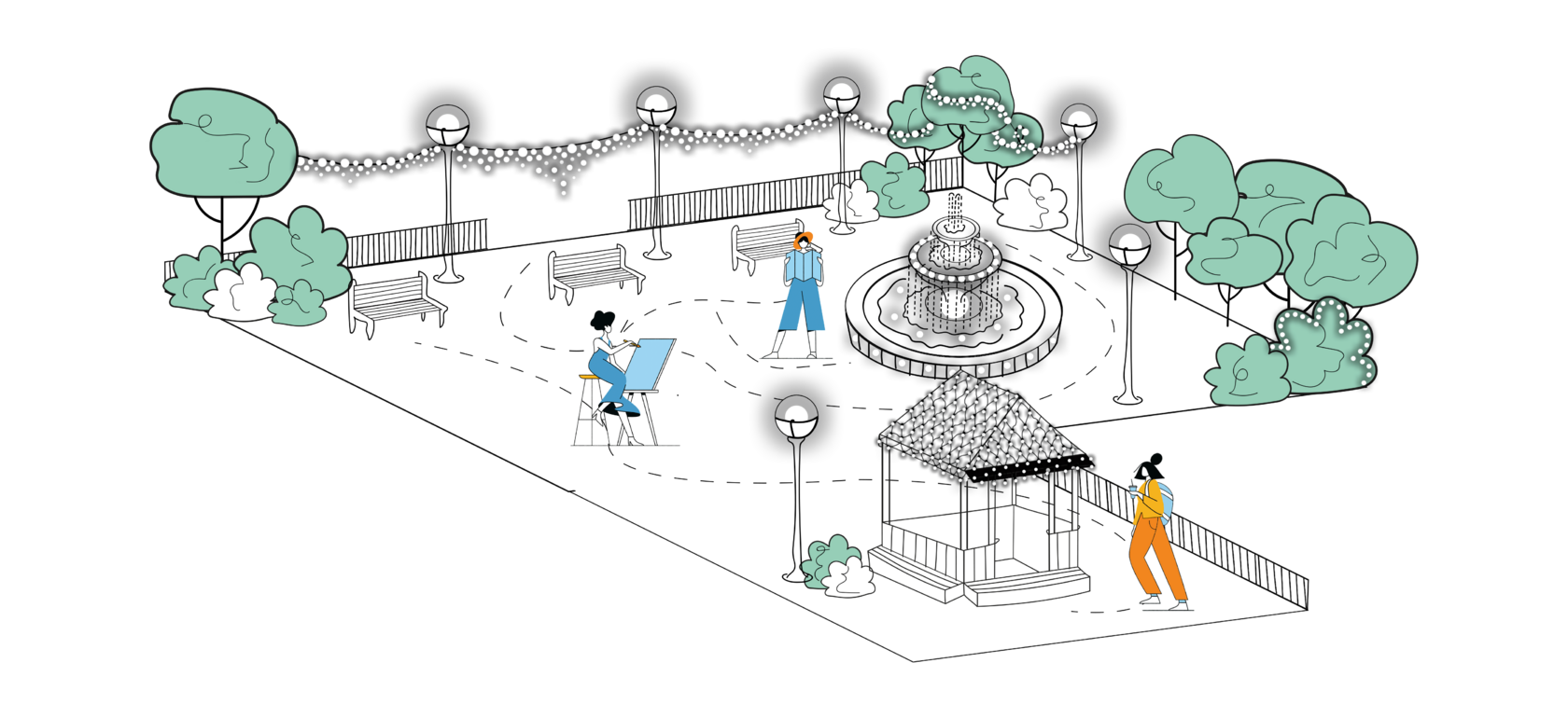 Выполнить красивое и эффектное освещение загородного участка, парка или сквера без работ на земле не возможно. Поэтому мы оказываем услуги по полному благоустройству с подготовкой траншей, прокладкой коммуникаций, установкой светильников, по готовой трассировке и плану. Наши специалисты создадут проект по вашему заказу или обновят уже существующий ландшафт. А украсит все это свет: мы сделаем декоративную подсветку фигур, водоемов и любых элементов ландшафта. Сделаем неповторимую подсветку любой территории, будь то небольшой двор дома за городом или крупный городской парк.